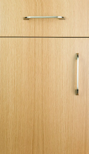 Rift cut and quarter sawn white oak. It’s also perfect for slab cabinet doors, doors that have no recessed or raised panel, because the wood adds a touch of pattern and style to an area without looking too busy. We offer the option of a door having a solid wood center panel.